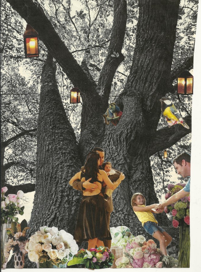 Collage made with materials sourced primarily from National Geographic magazines. 8 1/2 x 11″ print available in store