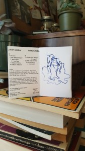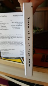 Side B: (1) “Lunchtime news” by Janet Solval. My voice. (2) “Jax licking” and “Mechanic” by Janet Solval. My voice. (3) Grandma’s voice. Catherine Taylor’s voice. Kelsey Sucena’s voice. Laura Pierson’s voice. My voice. (4) My voice. Recorded by Abra Sussman at Nervous at Stories Bookstore.