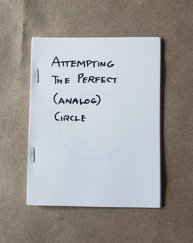 An attempt to draw a perfect circle by purely analog means. Hand drawn with sharpie on white paper. A meditation on meditative practices, and a companion volume to ‘Attempting the Perfect Digital Circle’.