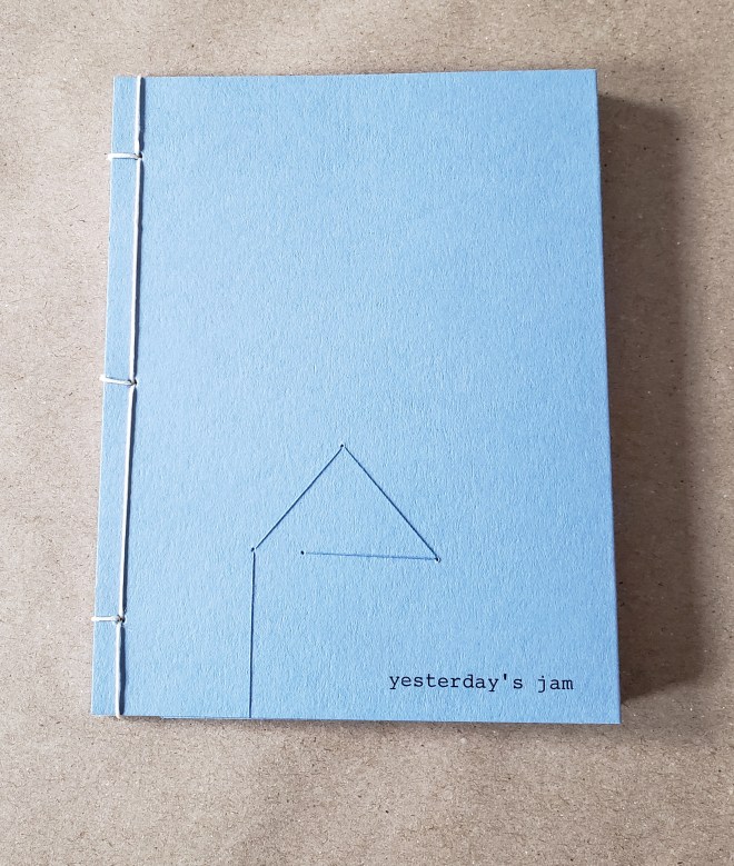 yesterday’s jam is a collaborative work of text and sewing. Hand sewn thread and material designs are interspersed with foldout pages of typewritten texts. The book is a conceptual relative to pre/post/during (2024).
