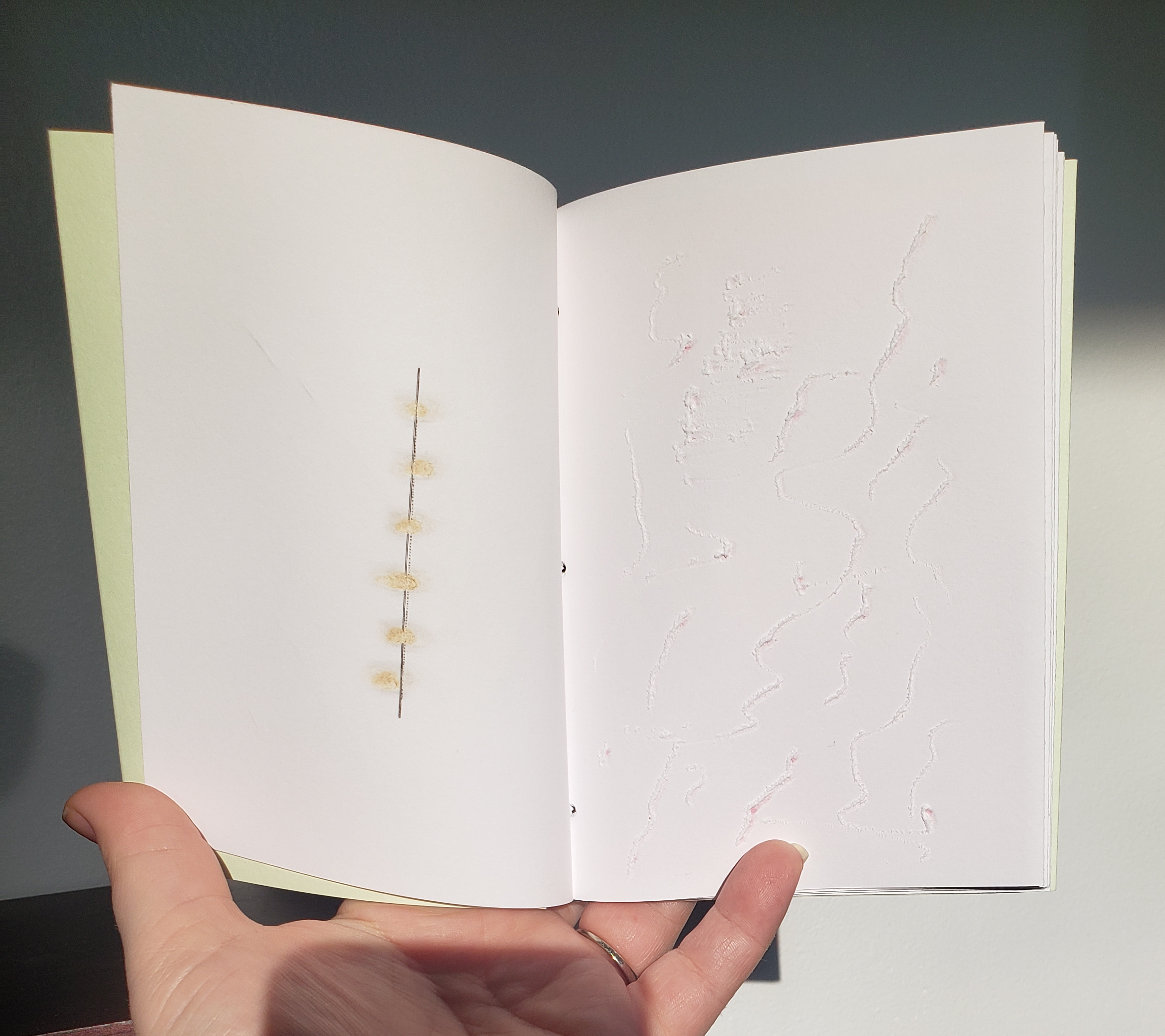 pre/post/during is a multi-sensory book, full of manipulations of paper as textile. The book is a conceptual relative to yesterday’s jam (2023).
