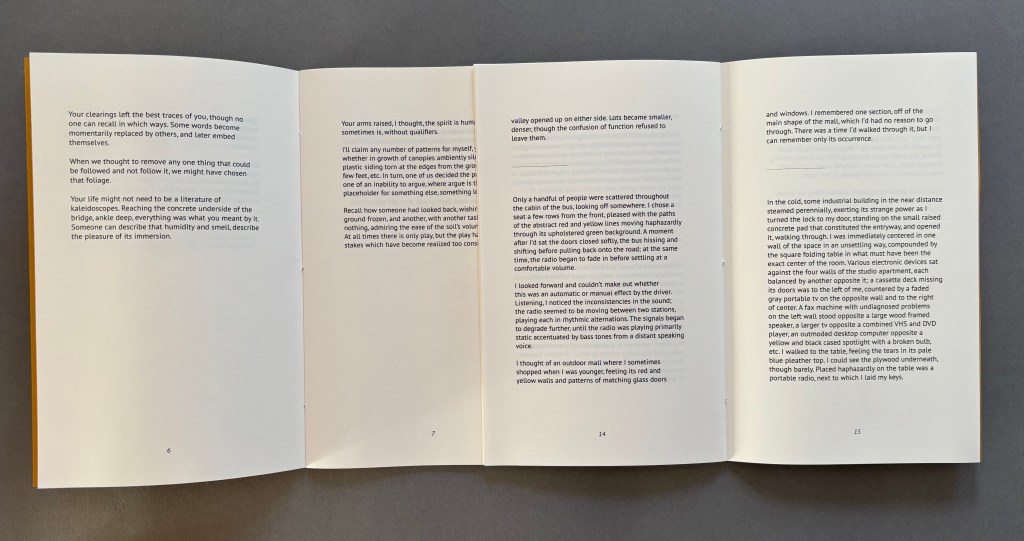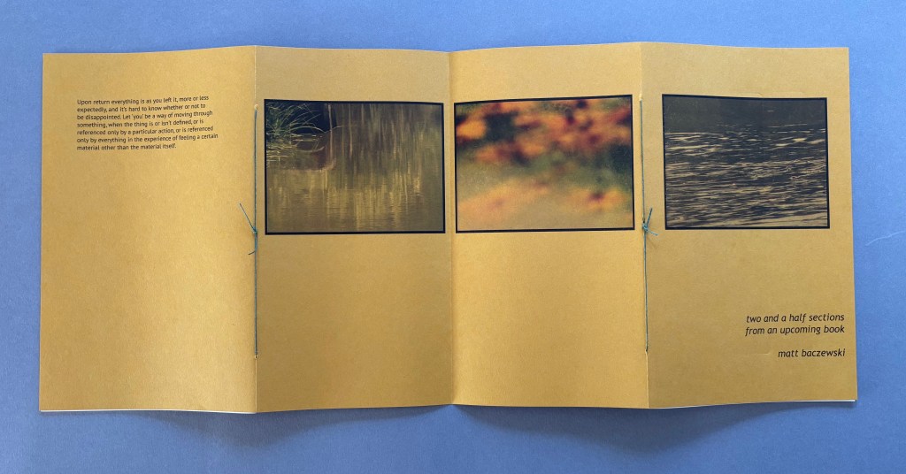 Double bound sewn chapbook, 5″ x 8″, 44 pgs