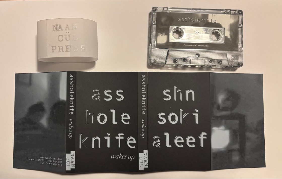 The newest release from assholeknife on tape! wakes up is a collection of improvised songs from the trio featuring a variety of instruments, samples and stream-of-consciousness lyrics. Sometimes noisy, sometimes droning; percussive rhythms meld with melodious vocals and burbling synth, punctuated by stabs of sound.
