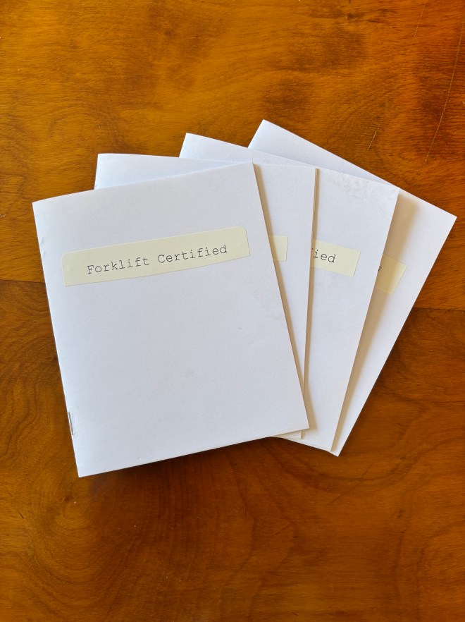 A book of sheets creatively driven over, on and around by a forklift and compiled. Full of patterns, textures, and dirt.