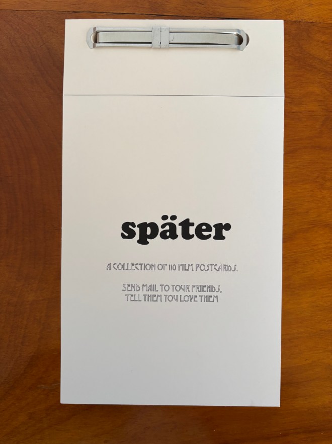 später is a collection of tear away postcards of 110 film photographs. Send mail to your friends, tell them you love them!